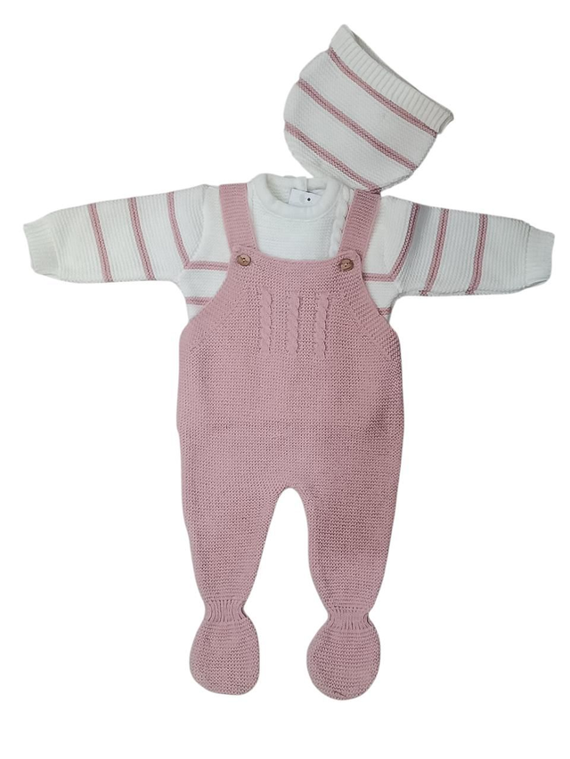 Ensemble 3 pièces ecru/rose